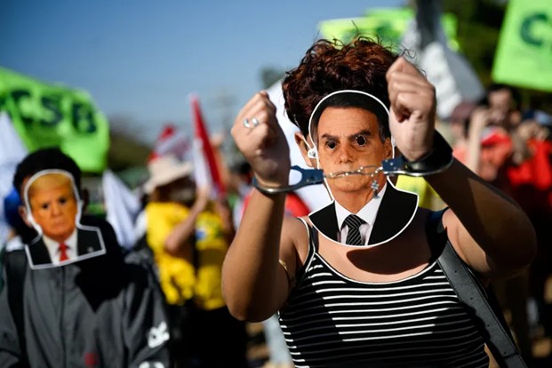 Biểu tình phản đối thuế quan của Mỹ trước đại sứ quán Mỹ tại Brasília, tháng 8 năm 2025