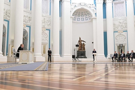 Vào ngày 21 tháng 2, trong một phiên họp của Hội đồng an ninh được phát sóng toàn quốc, những người thân tín nhất của tổng thống dường như hoàn toàn mù tịt về những gì mà sự công nhận của Donetsk và Luhansk sẽ yêu cầu. Naryshkin, thuộc Cơ quan Tình báo Nước ngoài, đã phải lắp bắp nói khi Putin yêu cầu xác định ủng hộ quyết định này. Vào cuối cuộc trao đổi này, Naryshkin dường như đang run lên vì sợ hãi. Ngay cả Patrushev, một người theo chủ nghĩa Chekist bảo thủ cứng rắn, cũng muốn thông báo cho Hoa Kỳ về kế hoạch đưa quân đến Ukraine của Nga - một gợi ý đã không được trả lời.