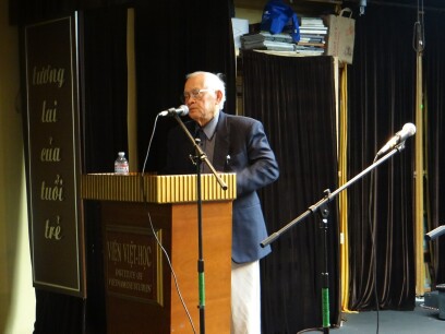 Người đầu tiên nói chuyện là GS Nguyễn Văn Sâm, một kho tàng văn học chữ Nôm biết đi, cũng là một ngưới viết truyện ngắn cực kỳ xuất sắc.
