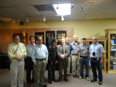 Hình lưu niệm, từ phải: nhà thơ Lê Trung Khiêm, họa sĩ Nguyễn Hồi Thủ, họa sĩ Nguyễn Tam Dương, nhà văn Lê Lạc Giao, GS Đặng Phùng Quân, nhạc sĩ Nguyễn Đức Đạt, GS Đào Trung Đạo, Phùng Mạnh Tâm và Phan Tấn Hải.